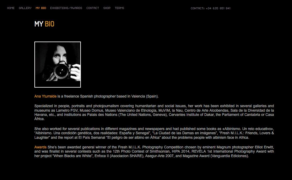 Creación de la página web de la famosa fotógrafa Ana Yturralde.